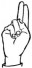 На ћирилици написано ВУКОСЛАВ ЈЕВРЕМОВИЋ састоји се из 18 слова [?]. Исписано ћириличном једноручном азбуком за глувонеме: